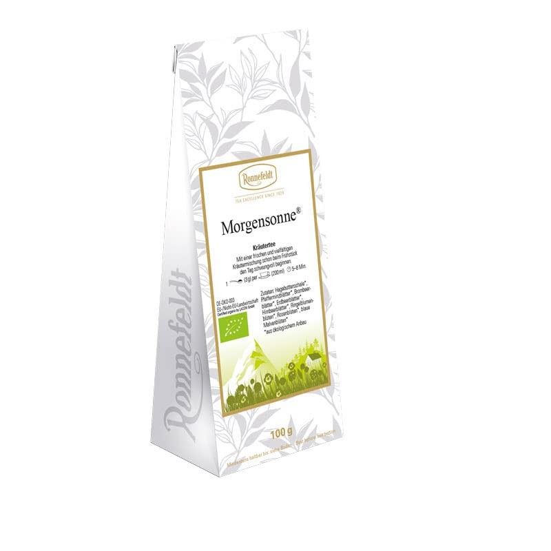 • Morning sun organic from Ronnefeldt - a classic herbal tea in organic quality with a brewing time of 5-8 minutes. Please always observe the recommended water temperature and brewing time - this is the only way to get a safe food.