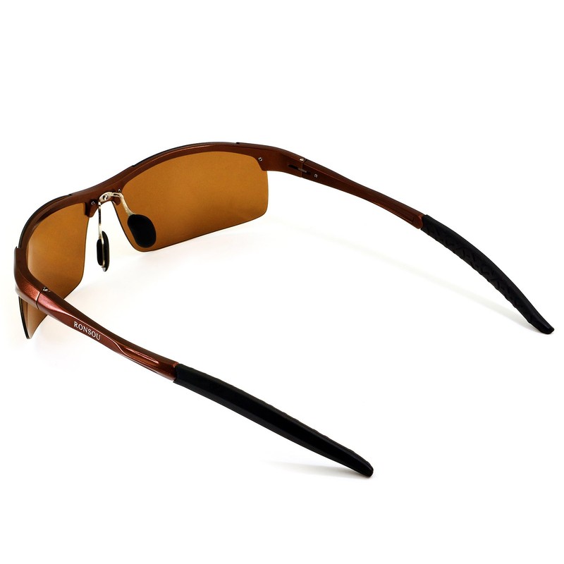 RONSOU Men Sport Al-Mg Polarized Sunglasses Unbreakable for Driving Cycling Fishing Golf coffee frame/coffee lens
