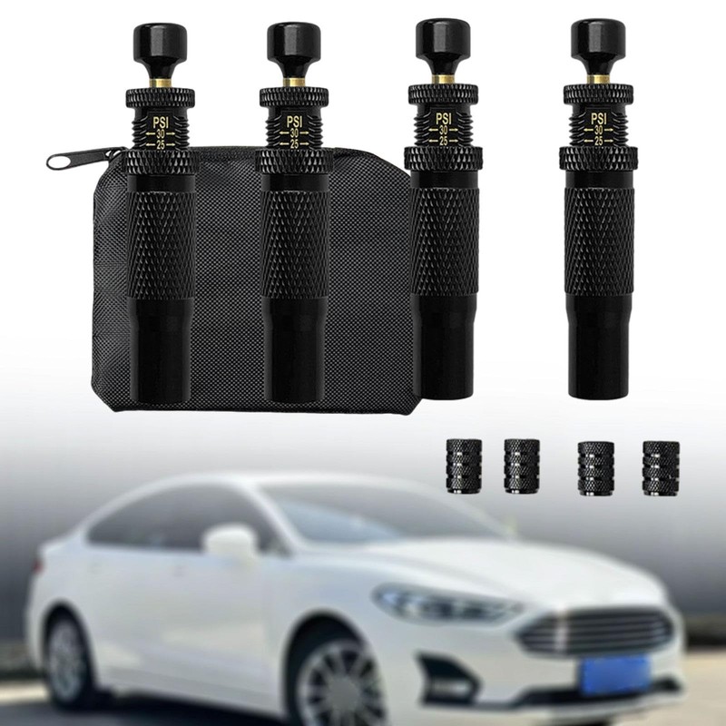 - 【Complete kit】: This auto stop tire deflator kit includes 4 deflation valves, 4 lids, and a storage bag to meet all your needs for tire pressure management