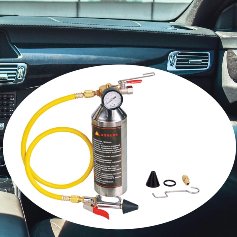 Ronyme Car Air Conditioner System Lines Flush Kit A/C Air Conditioner System Flush Canister Multipurpose A/C Drain Line Flush Kit, Stainless Steel