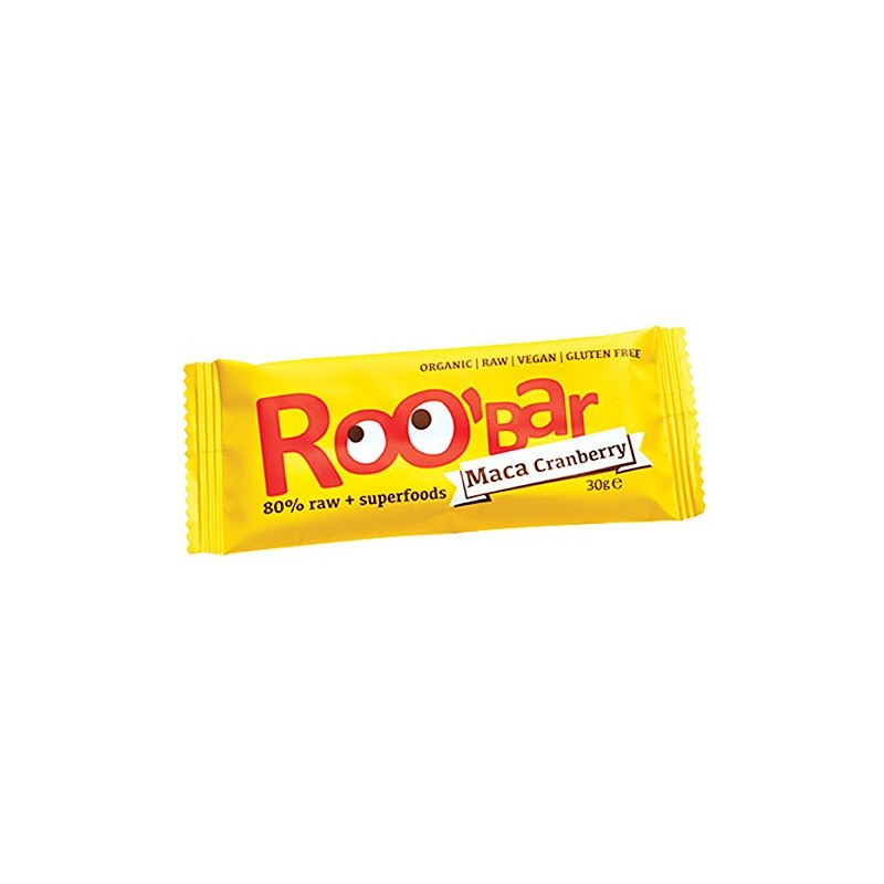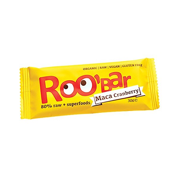ROO'BAR Maca & Cranberries 20 Stück (20x 30g) - Rohkost-Riegel mit Superfoods (bio, vegan, glutenfrei, roh)