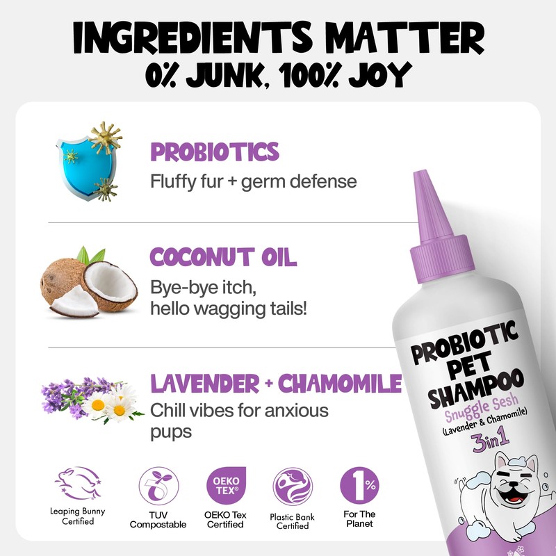 Roofus Dog Shampoo 1 Pack - Snuggle Sesh Probiotic Pet Shampoo for Deodorizing & Itching - Dog Hypoallergenic Shampoo for Skin Infections - Pet Shampoo Helps Shedding & Grooming Supplies