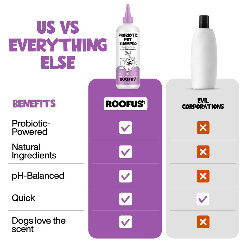 - ๐๐๐๐๐๐ญ๐ข๐ฏ๐๐ฅ๐ฒ ๐๐๐ฅ๐ฉ ๐๐ซ๐๐๐ญ ๐๐ค๐ข๐ง ๐๐ฌ๐ฌ๐ฎ๐๐ฌ: ROOFUS Shampoo is formulated with Lavender and Chamomile to provide a safe and effective solution for treating your dog or catโs skin issues at home. Our advanced formula helps deodorize the fur, detangle knots, and includes essential oils that support the management of skin-related concerns
