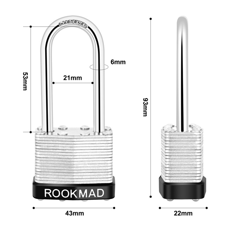 RookMad Keyed Padlocks, Laminated Steel Padlock, Keyed Alike Locks with Same Keys, Long Shackle, PE Plastic Hoop, The Lead Content of This Pad Lock complies with CA65, 10 Pack
