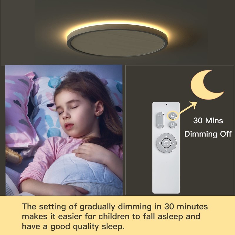 Roomratv Flush Mount Ceiling Light Fixture 2 Pack with Remote Control, Nightlight Warm 3000K, 12inch 28W Round Modern Ceiling Light, 3 Light Color Changeables, Brightness(10% to 100%) Adjustable