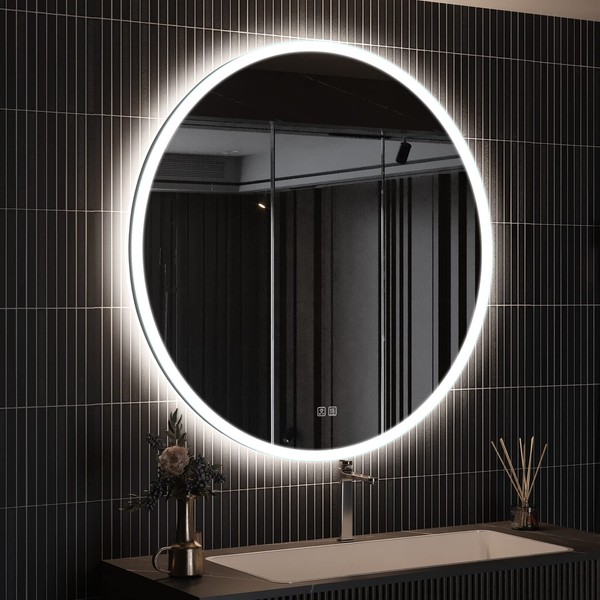 - 【Reliable Packing & Easy Installation】 circle LED lighted vanity mirror is secured by buffer foam box with extra protection. Plug and screws are included the package. Fix the screws on the wall to hold this round LED bathroom mirror. Use plug to plugin power outlet or directly connect switch by hard wire. Recommend the mirror is installed by a professional electrician.