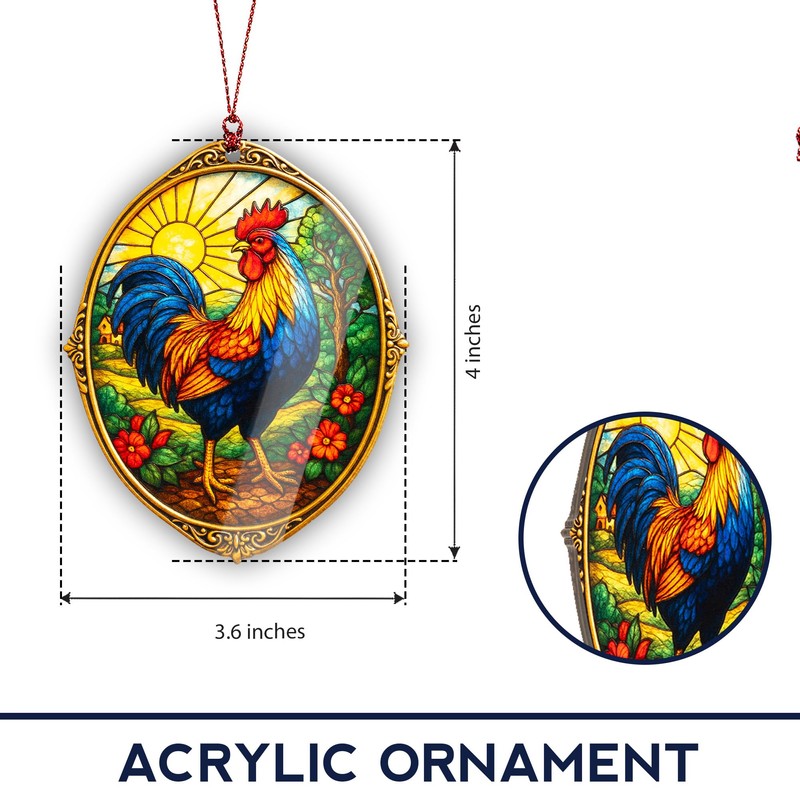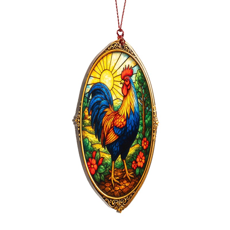 Rooster Ornament – Farmhouse Decor | Rustic Kitchen Ornament + Country Rooster Gift – Suncatcher Effect Stained Glass Window Hanging – Car Hanging Decoration