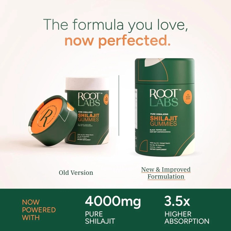 ROOT LABS 4000 mg Pure Himalayan Shilajit Gummies, KSM-66 Ashwagandh I 60 Gummy