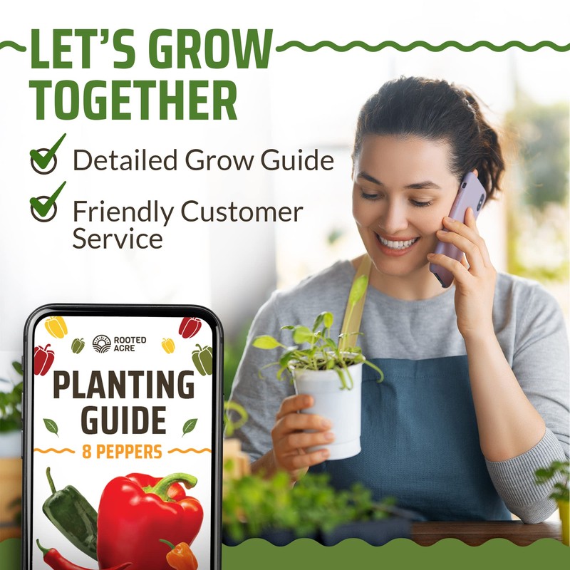 Rooted Acre 8 Varieties Hot Peppers β 240 Heirloom Seeds, π‘π’π‘-ππ π’ π¨π¦π-π¦π’π¨π₯πππ, High Germination β Includes Ghost, JalapeΓ±o, Serrano, California Wonder & More β Spicy Pepper Garden Mix