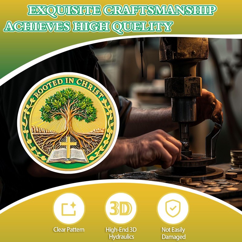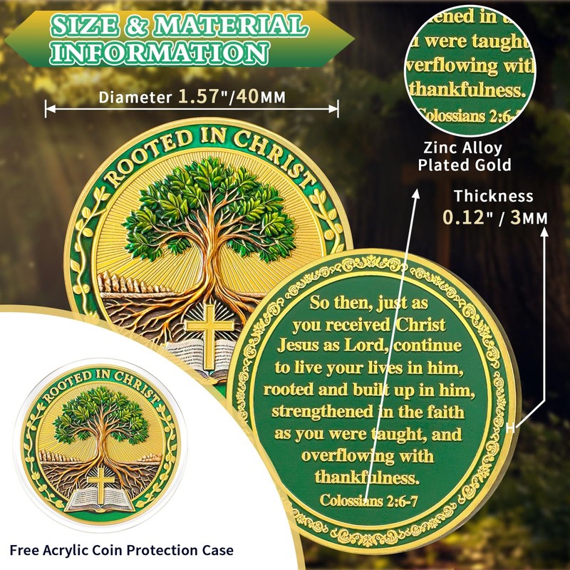 - Christian Coin: This is a Christian coin with the theme “Rooted in Christ” that encourages us to be deeply rooted in the teachings of Jesus Christ, to draw strength and to live with gratitude. The religious coin conveys admiration for God and inscribes Bible verses to inspire us to be thankful for God's grace and to maintain humility and faith at all times. Christ coins not only have ornamental value, but also have a devotional role, helping us to feel the power of faith in our daily lives