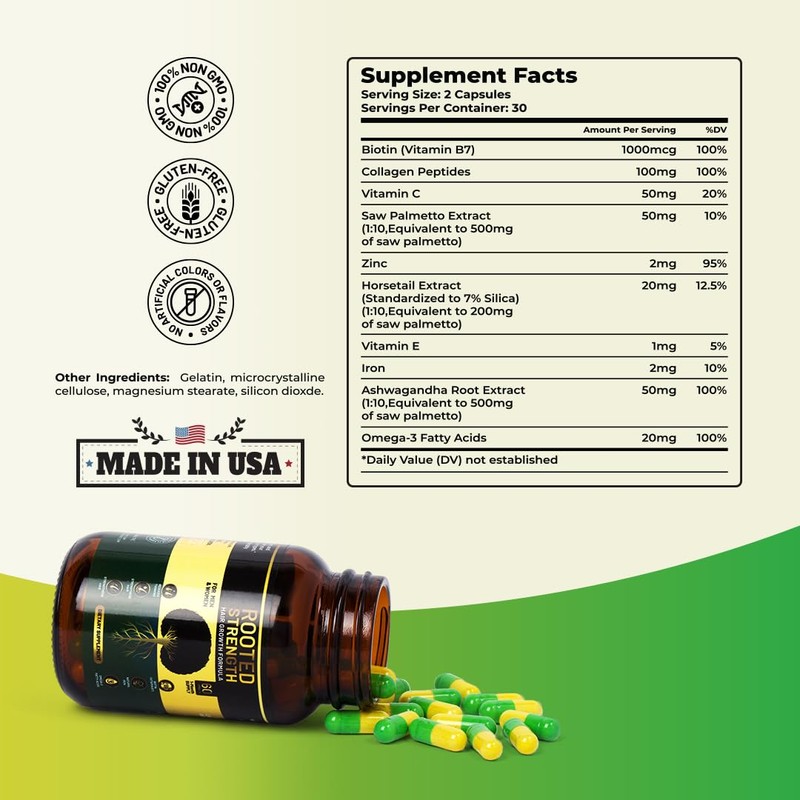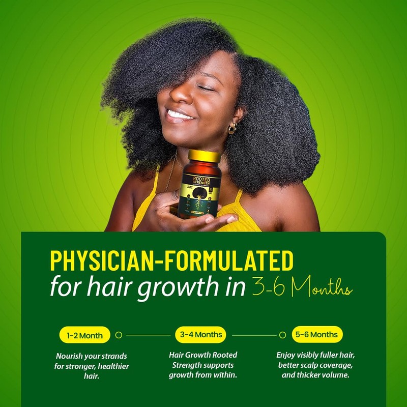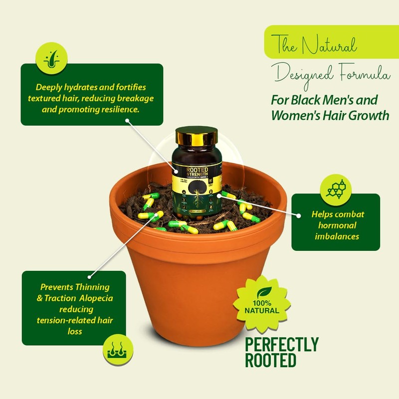 Rooted Strength Hair Growth Vitamins – Hair Vitamins for Black Women & Men with DHT Blocker & Collagen, Advanced Biotin for Hair Growth Women, 60 Capsules, 1-Month Supply, for Thicker, Stronger Hair