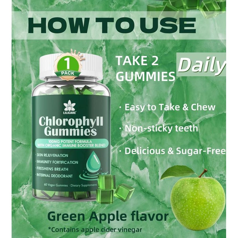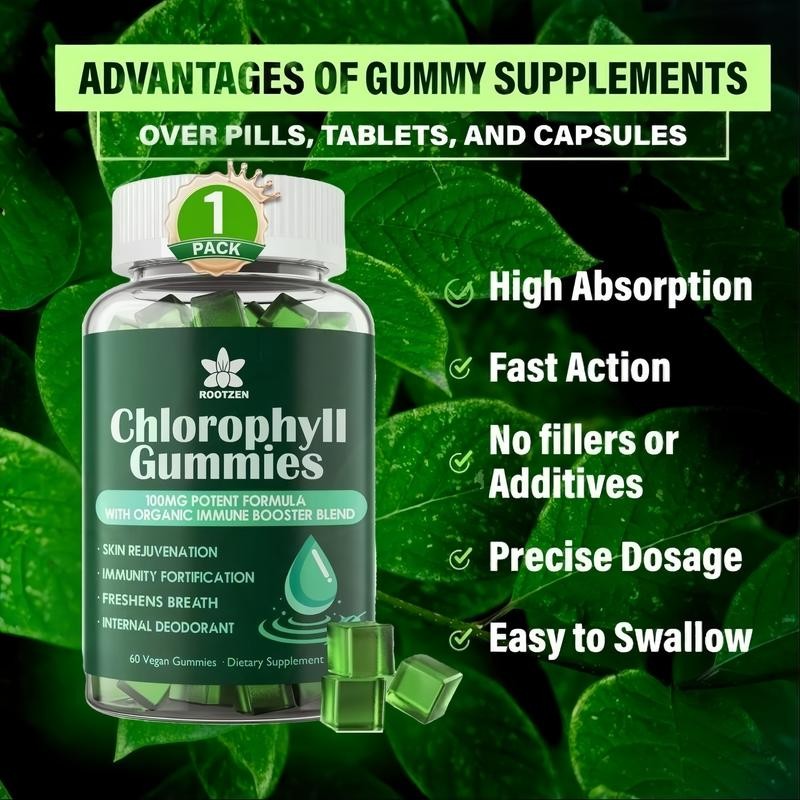 Rootzen 100mg High Concentration Chlorophyll Gummies | Revitalize Skin + Strengthen Immune System + Refresh Body | 60 Vegan Dietary Supplements