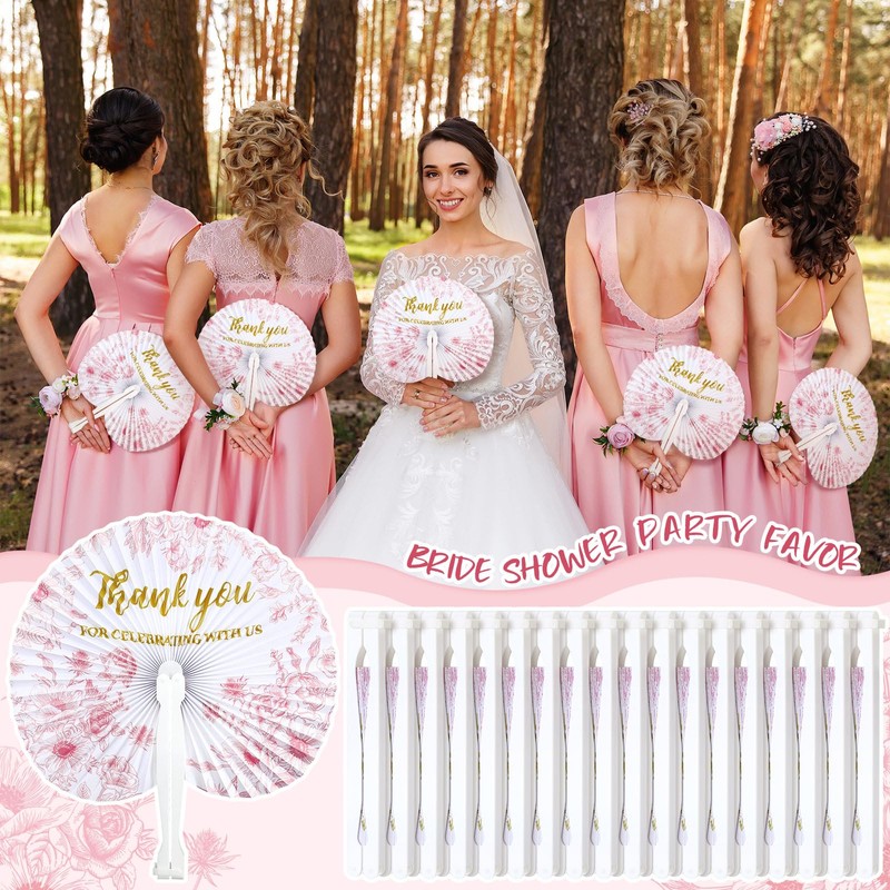 - Elevate Your Style: these wedding fans are not just cooling accessories but also elevate your style; Embedded with intricate floral patterns in elegant pink color, each fan subtly accentuates the elegance of your wedding attire