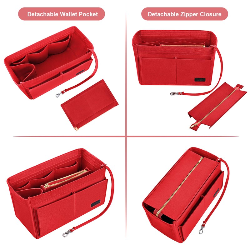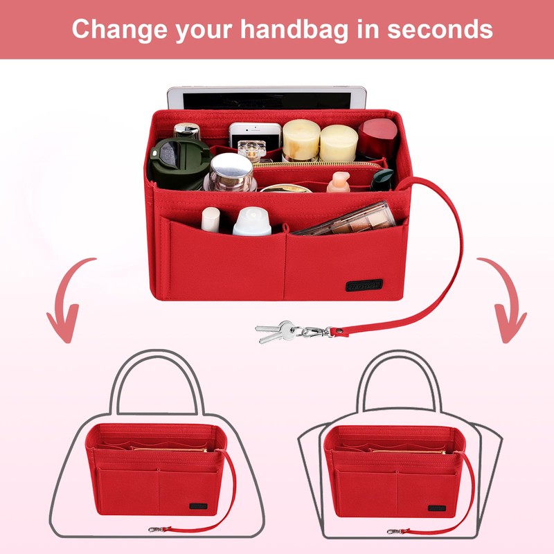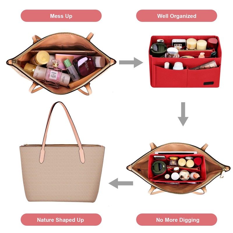 - 【Large Capacity Organizer】9 Pockets Total,3 exterior pockets, 6 interior pockets and a zipped purse(To store your valuables). Detachable inner partition design to meet your needs for different spaces. This purse organizer can Keep Your Handbag/Tote Shipshape. Are a well shaper, bag structure and lining protector as well. Keep Your Items such as Keys Phone, Wallet, Glasses, Notebook and suitable Ipad