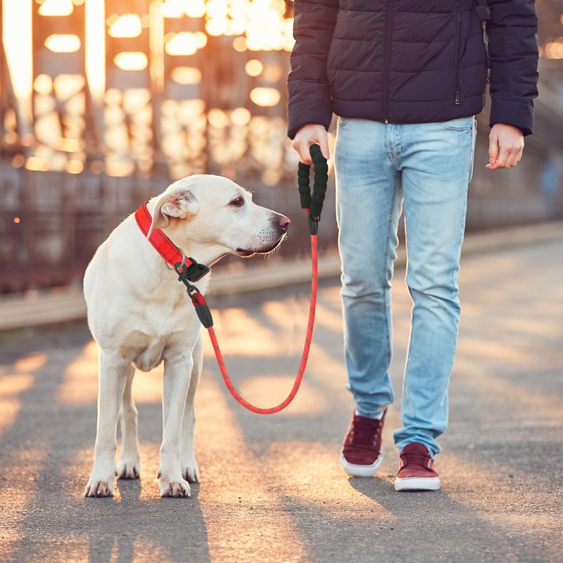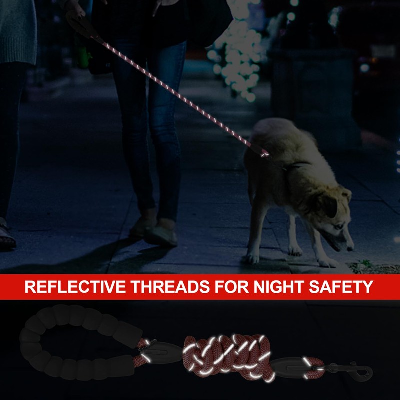 Rope Dog Leash 4 FT for Medium and Large Dogs,Heavy Duty Dog Rope with Comfortable Padded Handle,Waterproof Dog Leash for Walking,Reflective Nylon Dog Leash,Red