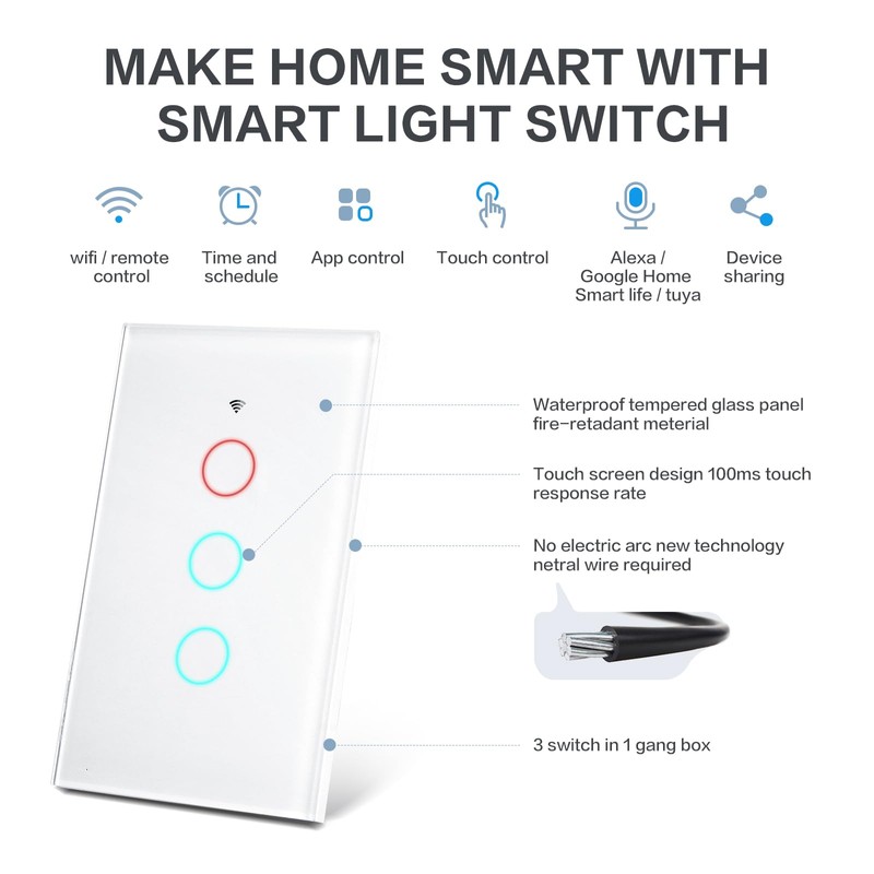 • Maximized Energy Efficiency: Our smart switches are crafted to use less energy, which helps reduce your home’s carbon footprint and electricity costs.