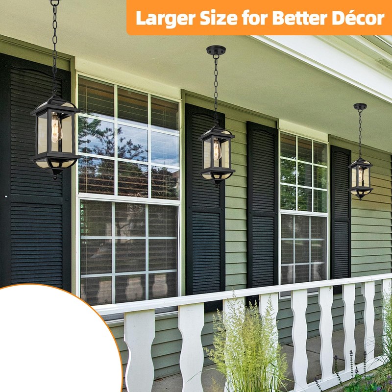 - ใ๐๐จ๐๐๐ซ๐ง ๐๐ฎ๐ญ๐๐จ๐จ๐ซ ๐๐๐ข๐ฅ๐ข๐ง๐ ๐๐ข๐ ๐ก๐ญ ๐ฐ๐ข๐ญ๐ก ๐๐๐ฆ๐๐๐ซ๐๐ ๐๐ฅ๐๐ฌ๐ฌ ๐๐๐ฌ๐ข๐ ๐งใRoravilila matte black outdoor pendant light features 12-side transparent clear glass, bringing people fancy light effect and alluring atmosphere. With delicate cambered glass design at its top and bottom, this large glass outdoor porch light ceiling mount would definitely be your attractive house ornament beyond all praises. why not choose this outdoor hanging light fixture to dress up your