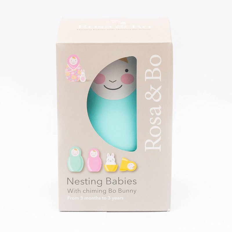 Rosa & Bo Rainbow Nesting Babies with Chiming Rattle - Russian Doll Educational Sensory Stacking Toy suitable for 6 months, 1,2 and 3 Year Old Boys and Girls