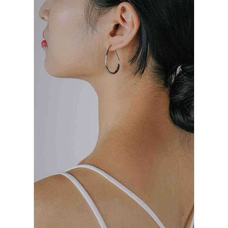 ROSA.H Unique And Simple, Anti Allergen Hypoallergenic Tear Drop Hoop Earring For Women (Large, Silver)