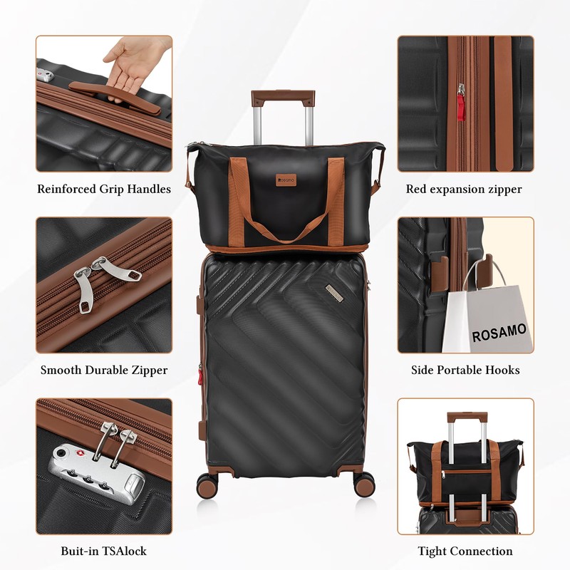 - 【High-Quality ABS Material】Crafted from superior-quality and lightweight ABS material, the Rosamo suitcase set has an additional protective layer on the hard shell, significantly enhancing its impact resistance. This robust construction guarantees that your luggage can withstand the rigors of travel with ease while remaining effortless to handle.