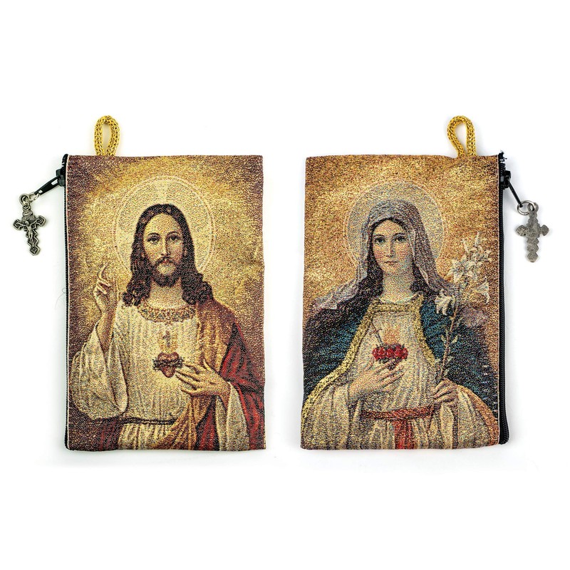 | Color: | Rosary & Bag - Sacred Heart of Jesus & Immaculate Heart of Mary |