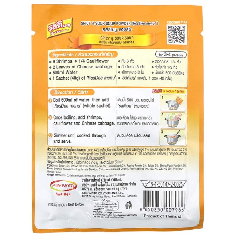RosDee menu, Spicy and Sour Soup Powder, Thai Sour Turmeric Soup 40g X 3 Packs