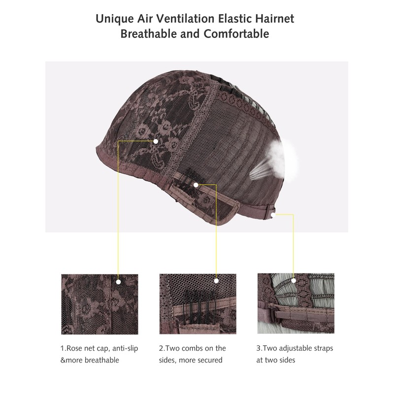 - Adjustable Wig Cap Design: Our lightweight curly bob wigs feature a breathable rose-net cap and front combs for a secure fit. Adjustable straps on each side ensure a comfortable fit for different head sizes.