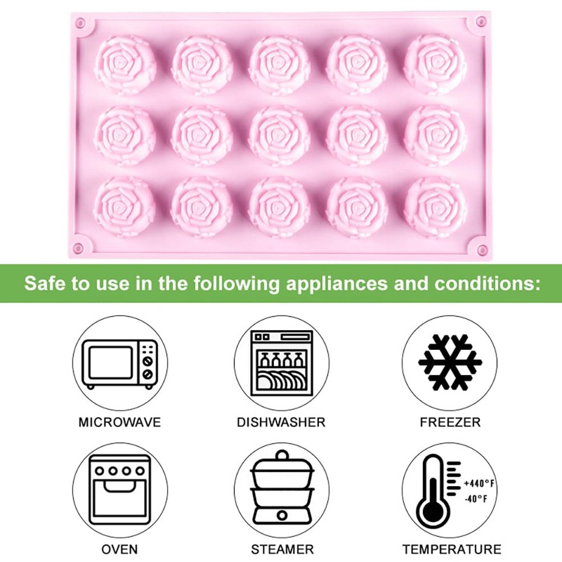 - You will get?: Package include 1 pack Valentine's Day pink flower rose Molds, with15 cavitis rose.