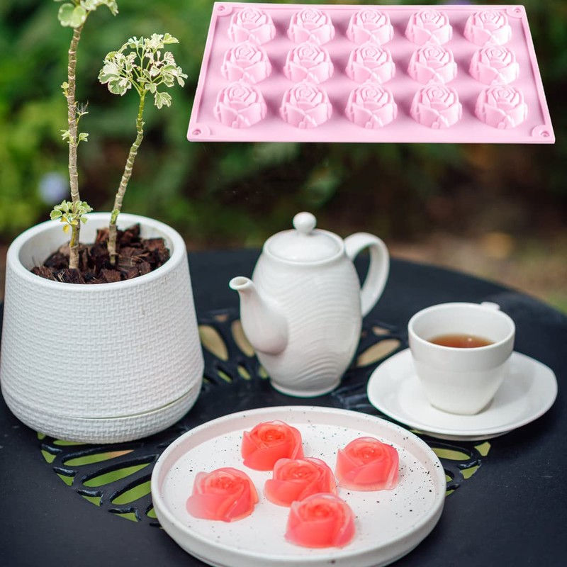 Rose Candy Chocolate Silicone Mold with 15 Hole Large Rose Shape Valentine's Day Mold,DIY Flower Cookies Candy Gummy Chocolate Mold Perfect for Soap, Mousse Ice Cream Tray 1 Pack