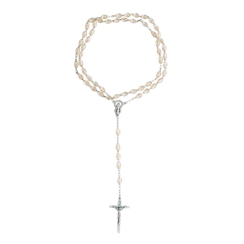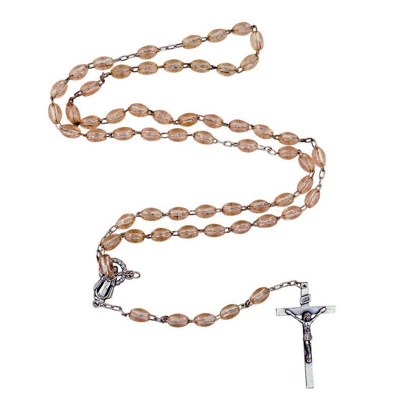 (Rose) - Catholic Rosary with Metal Crucifix Cross Made in Italy Miraculous Pink Oval Beads (Rose)