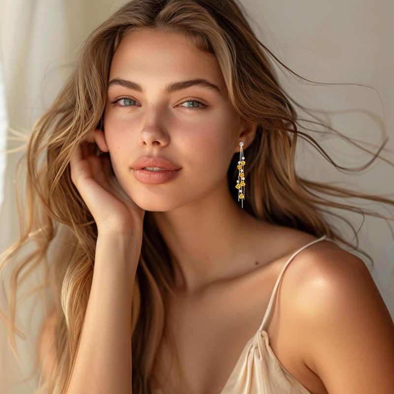 Rose Flower Drop Earrings Long Tassel Dangle Earrings Boho Floral Earring Flower Dangle Drop Stud Earrings Floral Petal Earrings Jewelry Bar Party Wedding for Women Girls (yellow)