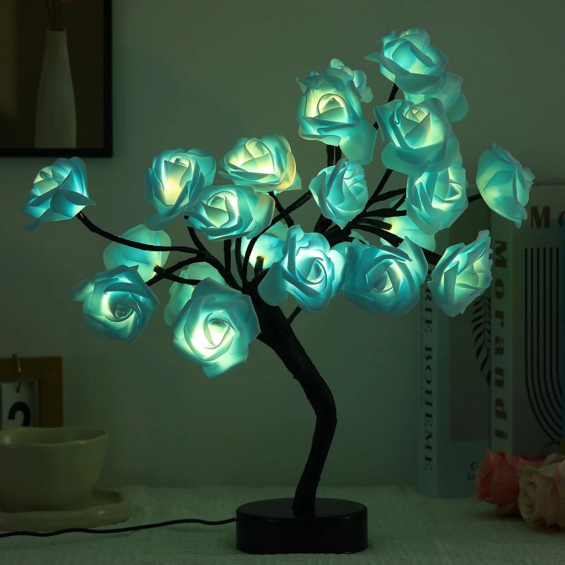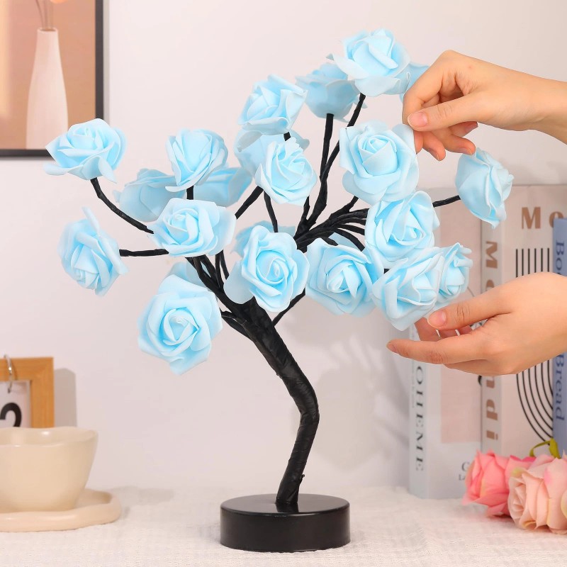 Rose Flower Tree Lamp - LED Rose Tree Table Lamp USB/Battery Powered Artifici...