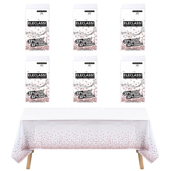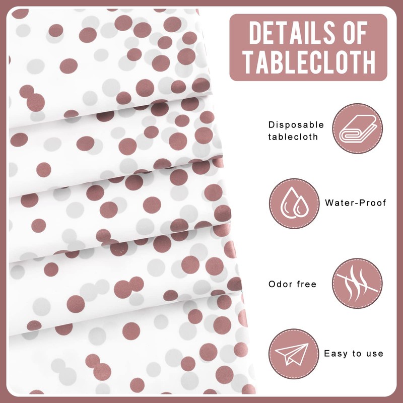 Rose Gold Confetti 6 Pack Premium Disposable Plastic Tablecloth 54 x 108 Inch - Rose Gold Dot Plastic Table Cloths for Parties Disposable Tablecloth for Rectangle Tables - Rectangle Tablecloth