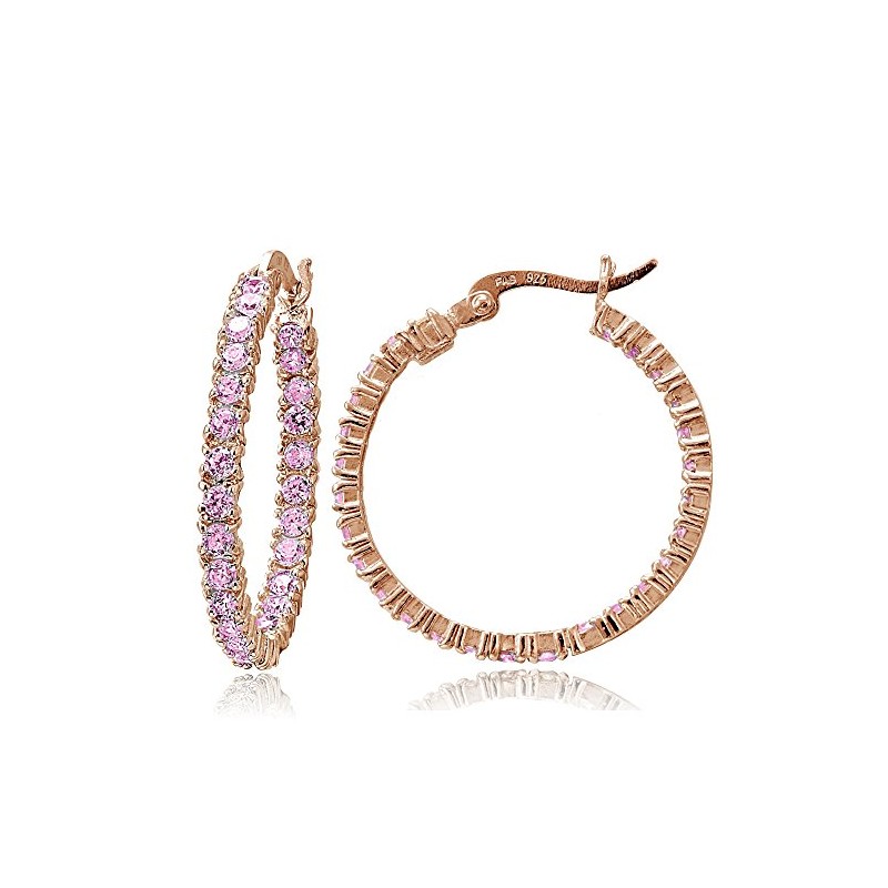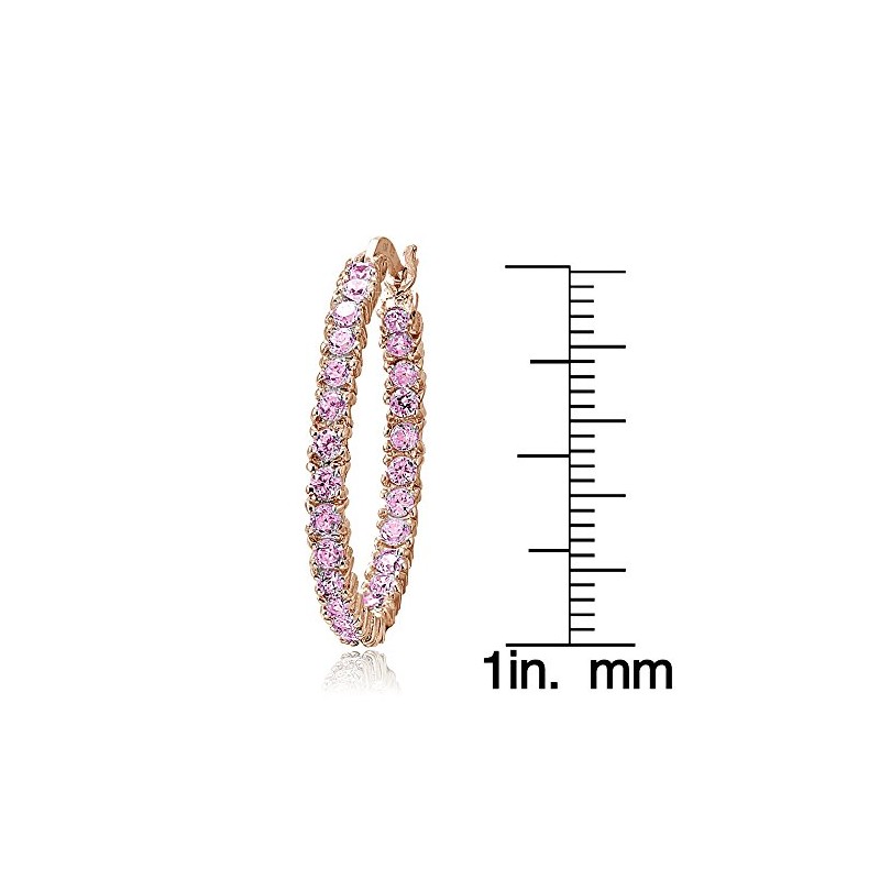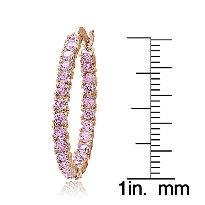 Rose Gold Flash Sterling Silver Pink Cubic Zirconia Round Hoop Earrings, 25mm