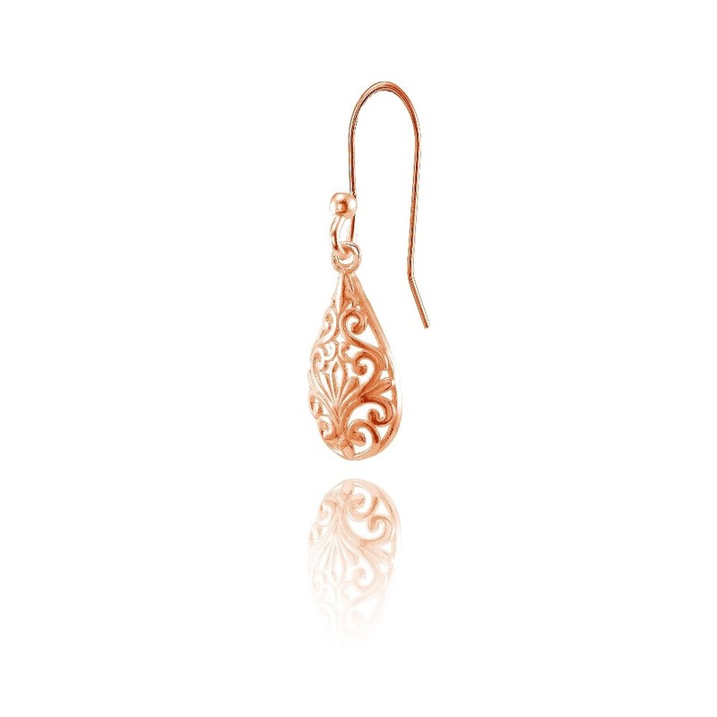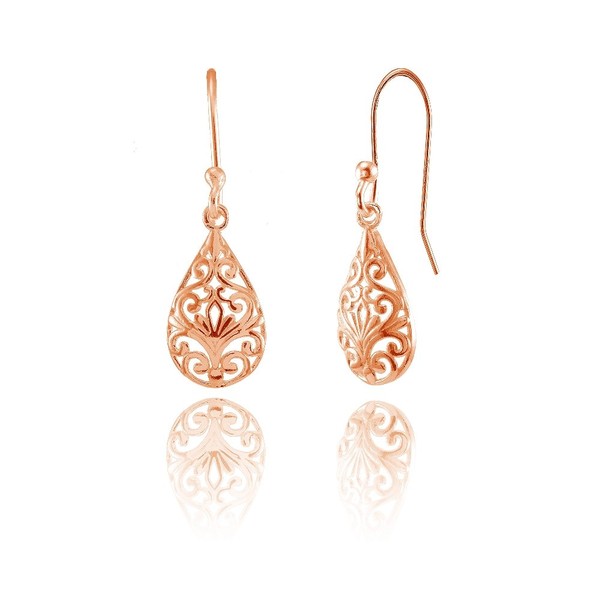 Rose Gold Flashed Sterling Silver Pear-Shape Filigree Polished Dangle Earrings