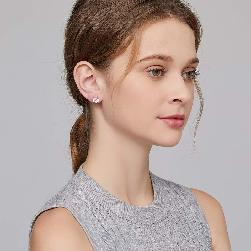 3.Fashion stud earrings for women. Woman silver earrings Men's fake diamond stud earrings made by 925 sterling silver. Quality cubic zrconia stud earrings is 100% Nickel Free, 100% Hypoallergenic silver earrings for almost sensitive ears. High quality round cut cubic zirconia stud earrings shining like a real diamond.