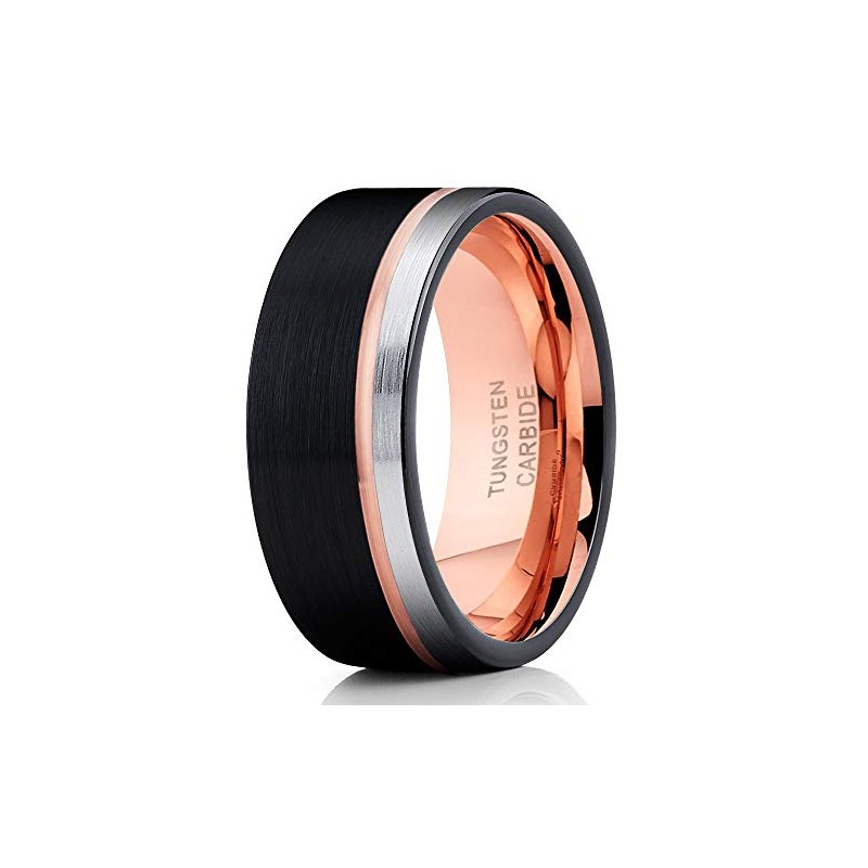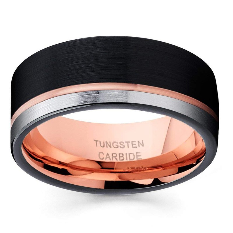 Rose Gold Tungsten Wedding Band Anniversary Ring Men & Women 8mm Black Tungsten Ring 18k Rose Gold Comfort Fit (11.5)