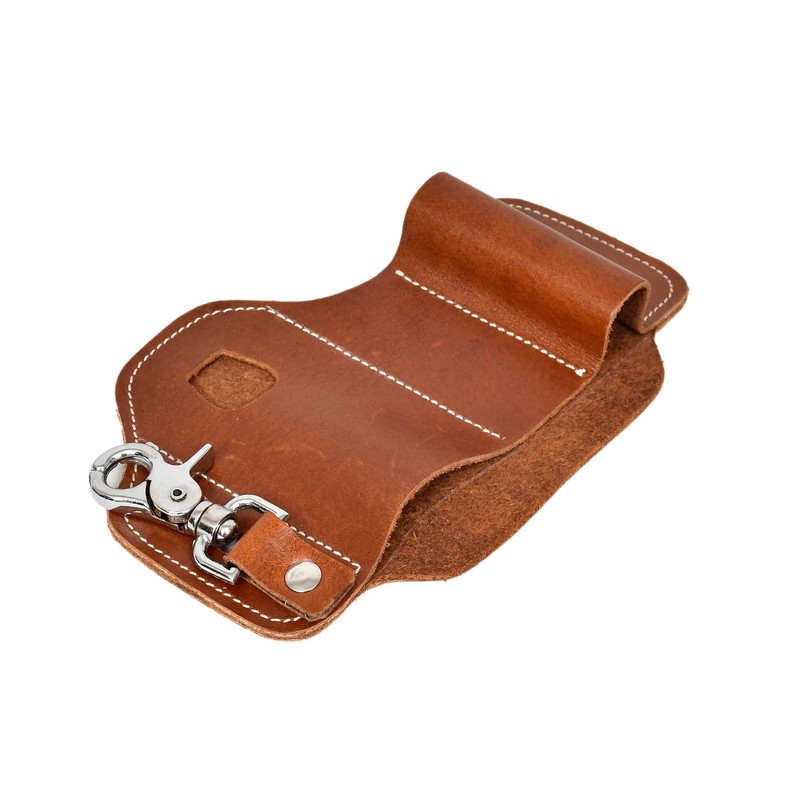 - This is a can or bottle holder tooled from full grain buff leather and it can accommodate a beer can or bottle. This beer can holder is durable, stylish and convenient for your outdoor activities.