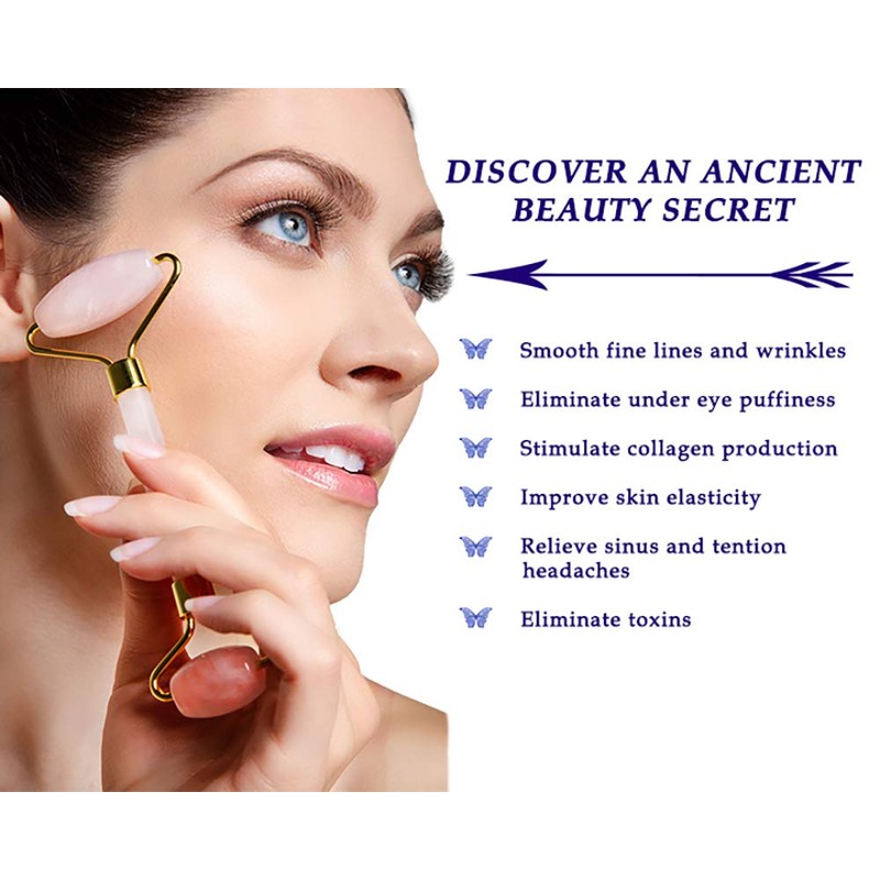 • ROSE QUARTZ - Our Facial Roller and Gua Sha Tool Set is carefully crafted from genuine Rose Quartz, a crystal that carries energetic properties of love, stimulating the heart chakra. It’s been used to treat heart conditions and poor blood circulation, and we can’t think of a better crystal beauty roller to enhance your beauty and health. Stimulating blood flow nourishes your skin cells with oxygen and nutrients, while carrying away free radicals.