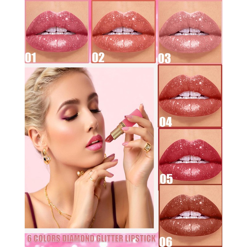 • Sparkling Glitter Lipstick - Sparkling shiny high pigment lipsticks come in 6 bold, vibrant colors that contain dense glitter powders, each with a diamond-like shimmer that will leave your lips sparkling, waterproof and moisturized all day long. Creating a dazzling shimmering effect with every application it meets your makeup needs for any occasion and is perfect for creating an eye-catching lip look.