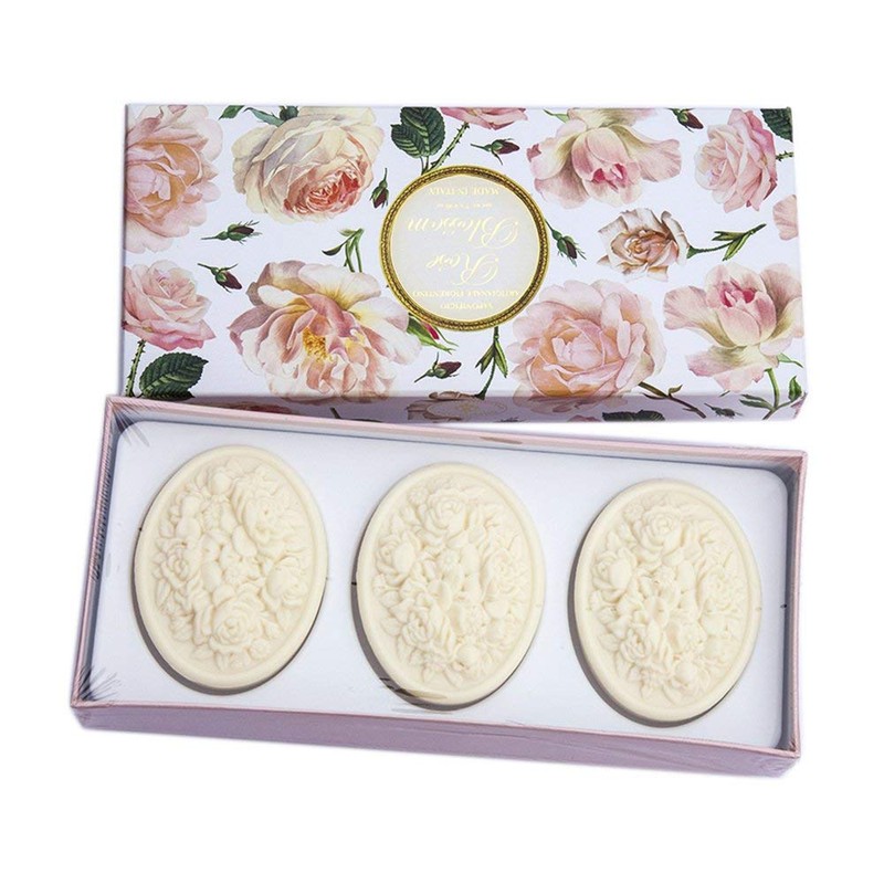 Rose Soap Oval 3 x 125 g Each Handmade Italian Soap from Fiorentino with Decorative Embossing