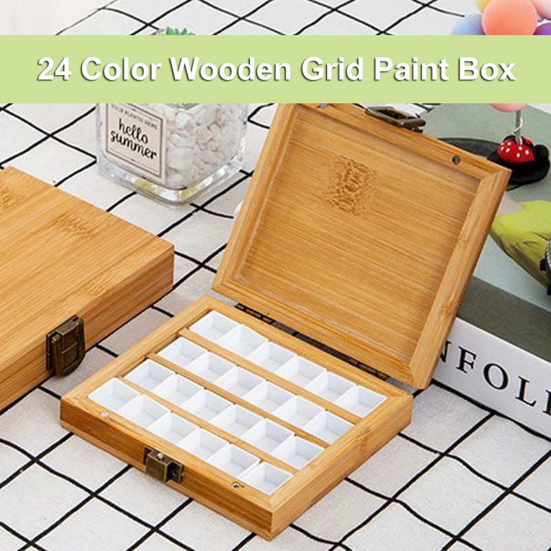 RoseFlower Wooden Watercolor Paint Palette Tray, Palette Paint Case with 24pcs White Washable Half Pans Grids Professional Art Supplies, Acrylic Painting Paint Saver with Lid, 4.5" x 4.1" x 1"