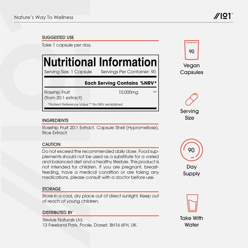 Found growing mainly in Europe, Rosehips are a bright scarlet fruit of the rose plant family. These small berries have a long history of use dating all the way back to the Ancient Greeks and Romans, and was a vitamin saviour in Britain during World War II. Commonly used in herbal teas, jams, soups and wines, Rosehips are a rich source of vitamins and natural carotenoids. Each serving contains 5,000mg of Rosehip for maximum purity, potency and performance. Always fair trade and non-GMO, this supplement is made from premium ingredients sourced in Europe and meets all food safety requirements.
