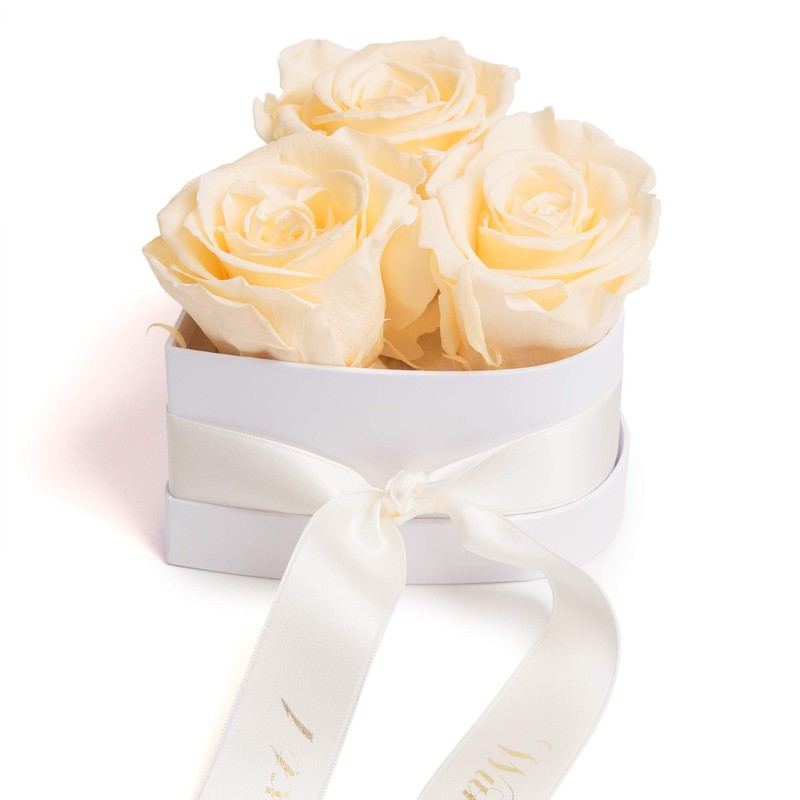 - Rose box 3 eternal roses in champagne personalised with gold text on satin ribbon. Whether as a gift for Valentine's Day or token of love, give your sweetheart a personal gift with a dedication