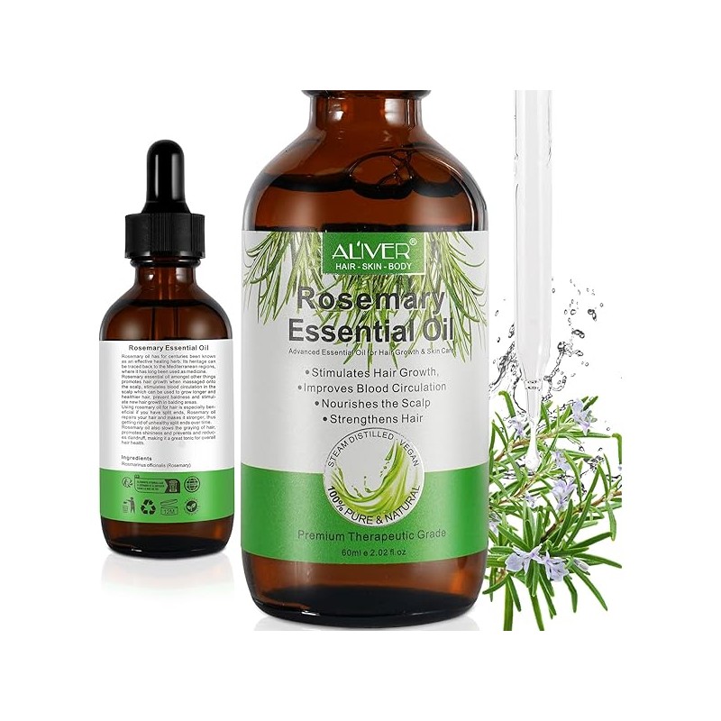 Rosemary Oil for Hair Growth, Natural Essential Oil with Aromatic Experience, Organic Pure Rosemary Essential Oil for Beard Growth, Eyelash Care, Nourishes the Scalp, Skin Care - 2.02 Fl Oz