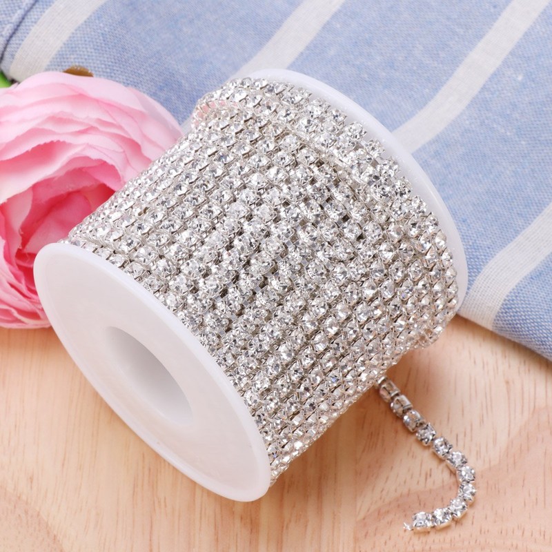 1 x 10 m crystal rhinestone closing chain, clear trim claw chain for jewellery, sewing, crafts, DIY (4.0 mm)