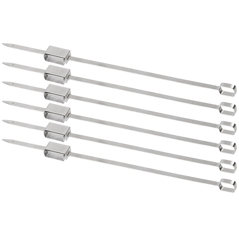 • XXL stainless steel barbecue skewers in a set of 6 with practical sliding mechanism. Also suitable for extra-large portions. Easy to clean: dishwasher-safe and rust-proof