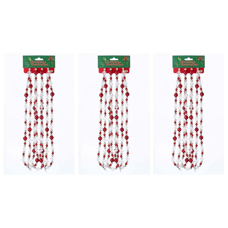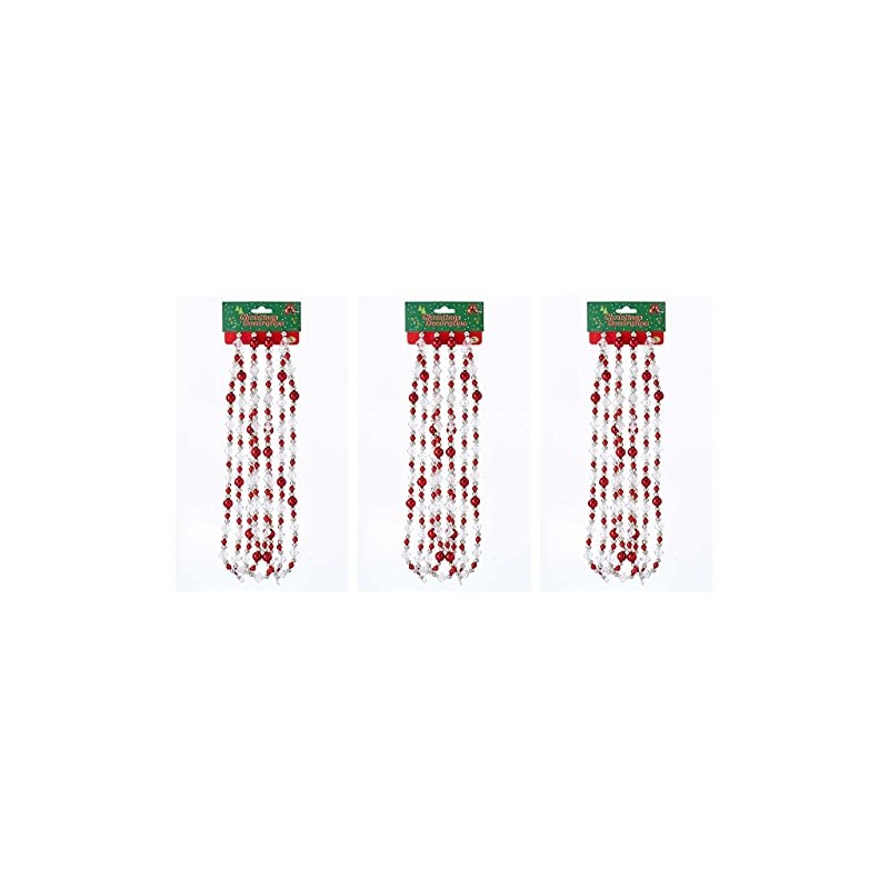 Roses and Mistletoe 9' Red Clear Silver Round Bead Christmas Garland Decor Set of 3