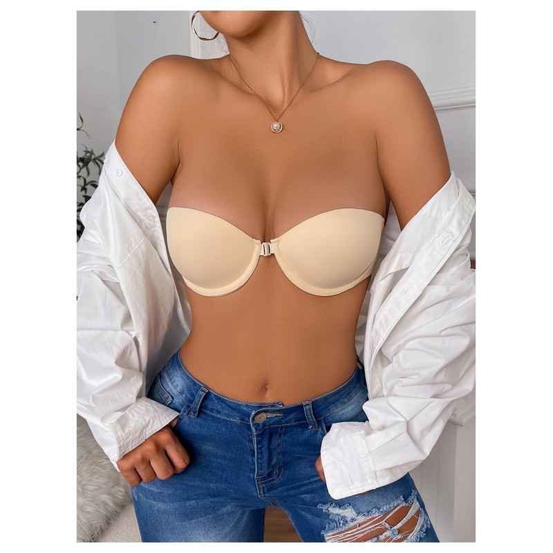 - Features: Front-close, strapless, sleeveless, underwire, plain, soft, trendy
