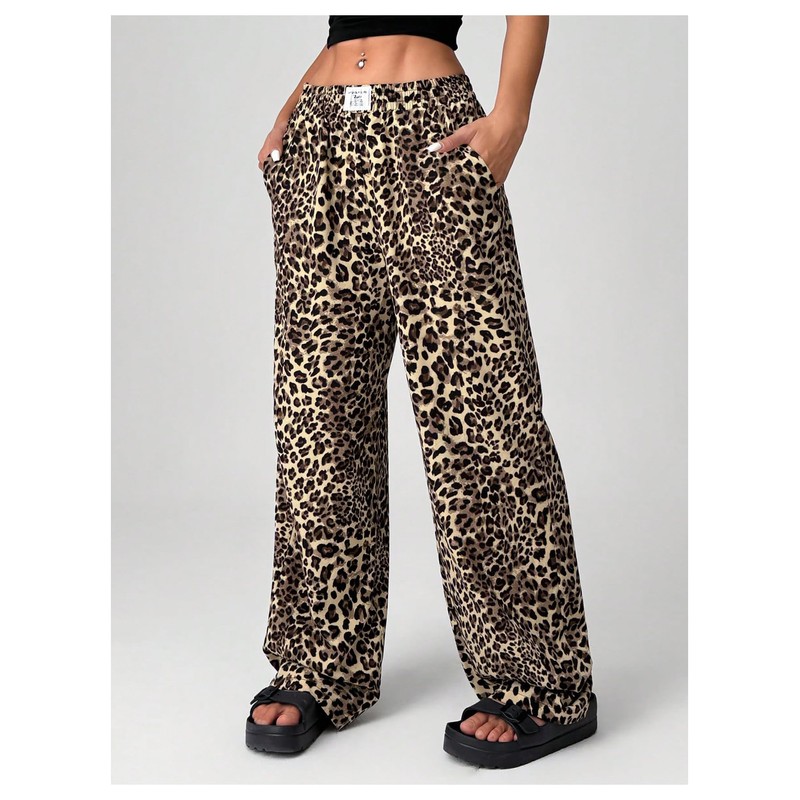 • Features: Womens leopard pants feature with leopard print, letter patched, pockets, straight leg, elastic waist